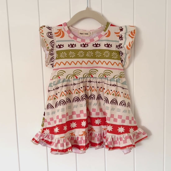 Featuring our exclusive biggsy+smalls Tropicale print, this dress is made from soft, breathable cotton with a gentle stretch, perfect for staying cool on sunny days. The relaxed silhouette allows for plenty of movement (and twirling), while the lightweight feel makes it ideal for everyday wear, special outings or holiday adventures.